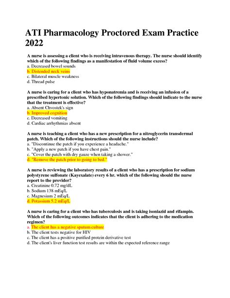 Free Read ATI PHARMACOLOGY PROCTORED EXAM QUESTIONS PDF Book Free Download PDF